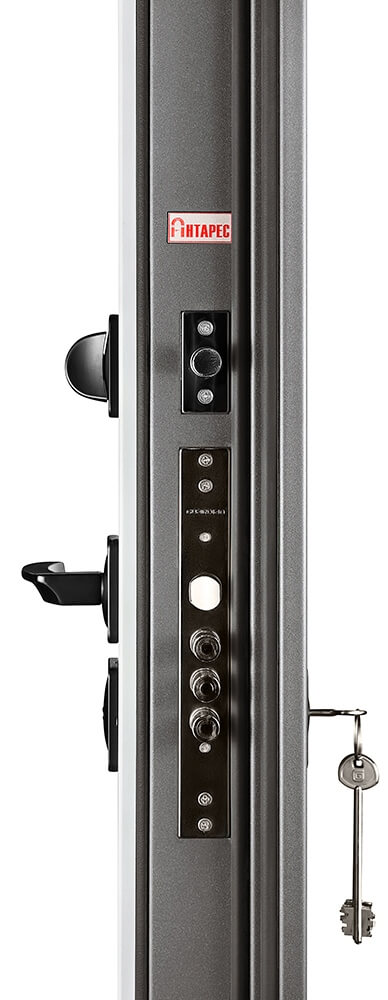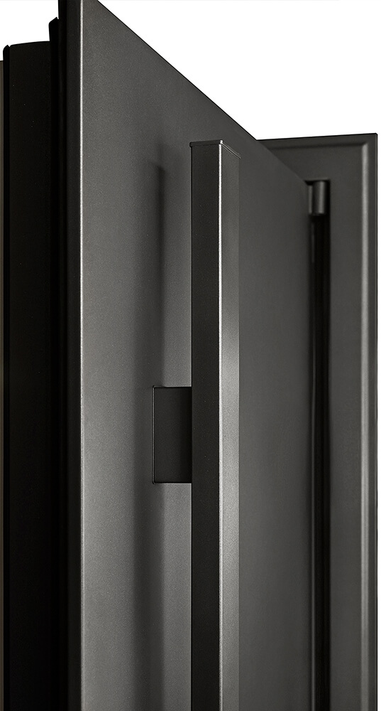 - Ручка внешняя - скоба 1800 мм с механическим приводом защелки в цвет металла, внутренняя - нажимная черная;
