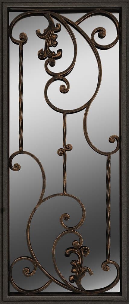 - Художественная ковка «Левкой» внутри стеклопакета, тонированное стекло, патина на ковке бронза;