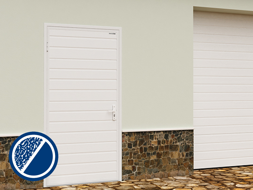 Она изготавливается из тех же сэндвич-панелей, что и гаражные, и уличные ворота, благодаря чему обеспечивается ее гармоничное сочетание со всеми элементами въездной группы. Гаражная дверь может быть изготовлена с открыванием в левую или в правую сторону, наружу или внутрь помещения. Порог двери имеет высоту всего 8 мм.