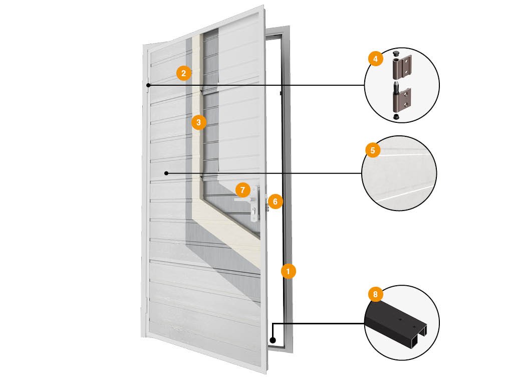 «УЛЬТРА» - это высокопрочное композитное полотно без сварных соединений, не подверженное коррозии и обладающее высокими показателями тепло- и звукоизоляции, влаго- и воздухонепроницаемости. Дверная рама изготовлена из алюминиевого профиля