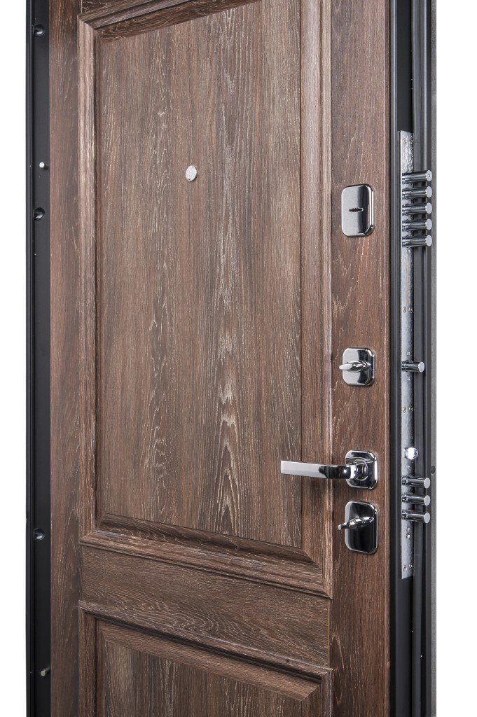 ОписаниеСтальной дверной блок произведен на уникальных автоматизированных линиях и роботизированных комплексах ведущих зарубежных производителейКачествоСертифицирован для РФ по ГОСТ 31173-2016. Наивысшие классы по эксплуатационным характеристикам (1) и прочности (М5). Сертификат POCC RU.AM05.H03178ОсобенностиЦельногнутая конструкция полотна и закрытый цельнокатаный профиль коробки. Стабильно точные геометрические показатели, которые обеспечиваются высокой степенью автоматизации и роботизации производстваМарка сталиВысококачественная конструкционная углеродистая сталь (08пс)ОкраскаИндустриальная полиэфирная порошковая краска с предварительной антикоррозийной обработкой (фосфатированием)Отделка снаружиДекоративная панель с возможностью замены. Толщина 18 мм, Эко Шпон (Германия, Южная Корея)Отделка внутриДекоративная панель с возможностью замены. Толщина 22 мм, Эко Шпон (Германия, Южная Корея)РегулировкаДверь укомплектована эксцентриком, правильная регулировка которого обеспечивает легкость открывания двери и беспрепятственную работу замковых механизмовУплотнениеТри контура высококачественного EPDM-уплотнителя (Швеция)УсилениеЧетыре вертикально-горизонтальных усиливающих омега-профиля (ребра) создают единую монолитную жесткость и прочность конструкции. Сверхпрочная конструкция «6x2» - двойная толщина стали профиля полотна, двух контуров коробки, в зонах замка и петель. Дополнительную стойкость ко взлому обеспечивают два противосъемных штыря с цинковым покрытием (для защиты металла от коррозии)Утепление полотнаВнутри полотна установлена конструкционная теплоизоляционная панель SIP (Structural Insulated Panel), которая не только обеспечивает необходимую теплоизоляцию, но и придает дополнительную жесткость и прочность дверному блокуУтепление коробкиВлагостойкая теплоизоляционная плита KNAUF ThermКреплениеДвери крепятся анкерными болтами через коробку (8 отверстий) или с использованием монтажных пластин (6 шт. в комплекте)Внимание!Дверь предназначена для установки в тамбуре или под защитным козырькомТолщина полотна/коробки, мм98/98Толщина стали полотна/коробки, мм1.2Ширина наличника, мм60Размер проема в свету, см193/76Масса нетто, кг108ПетлиДве петли Сombiarialdo 140*20 мм на опорном подшипнике с открыванием на 120° (Италия)Нижний замокBorder K 4-3 с 3 ригелями диаметром 17 мм, массивные общие планки (ответная планка из нержавеющей стали), 4-й (высший) классВерхний замокBorder K 8-6 с 5 ригелями диаметром 18 мм (один из ригелей с каленой вставкой), 5 ключей 120 мм, 4-й (высший) классЦилиндрSM-95-65/30 ключ-фиксатор NI Никель, 5 ключей в комплекте (либо аналоги)РучкаTOR CP ХромНочная задвижкаЗ-60 Б (вкладная)Глазок6016/70-110 CR Хром со шторкой и углом обзора 180°ПрочееЗаглушки для монтажных отверстий, чашки для противосъемных штырей