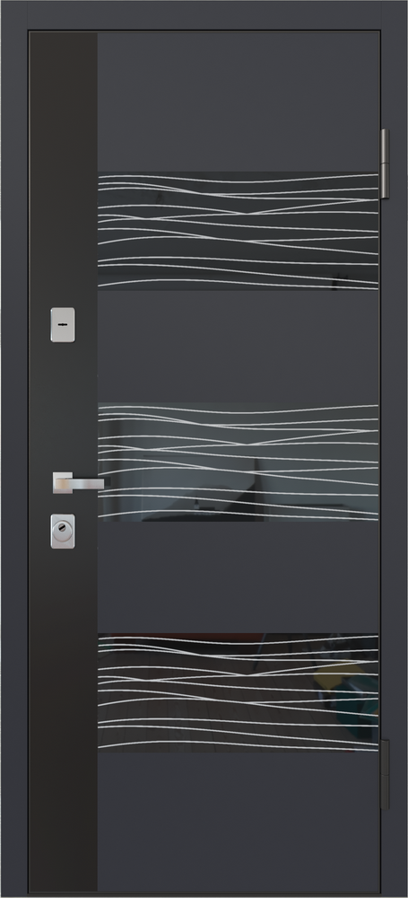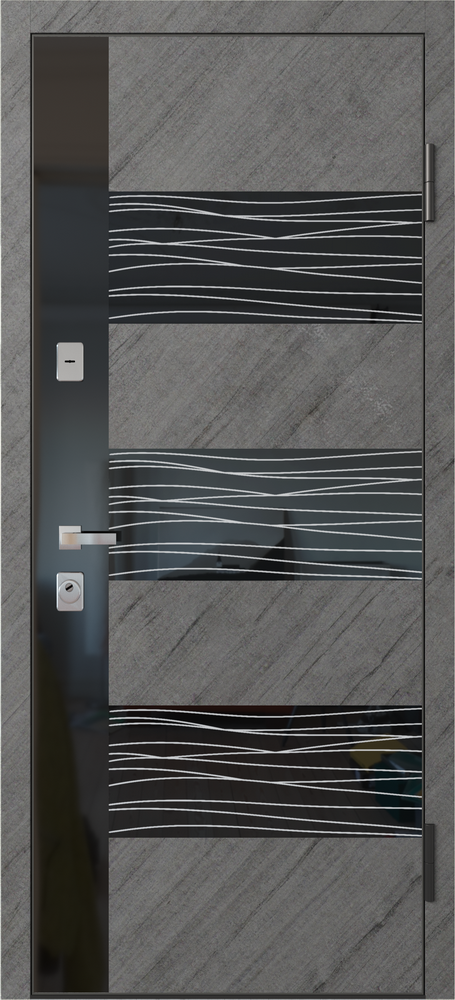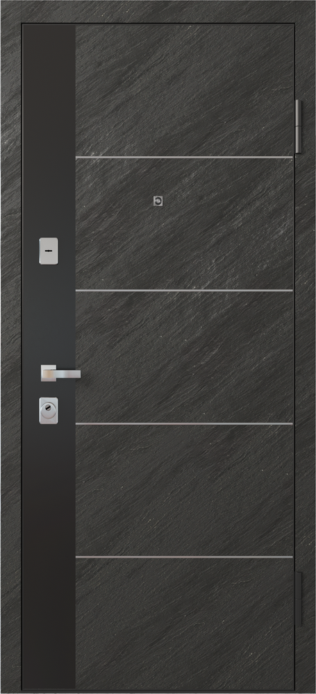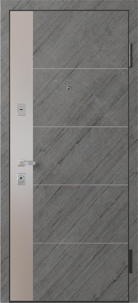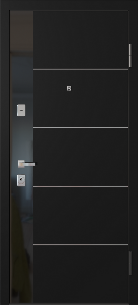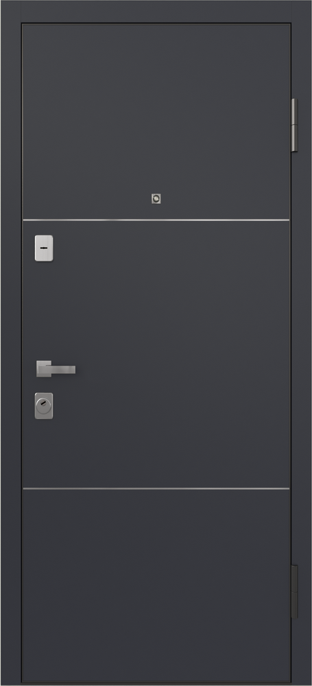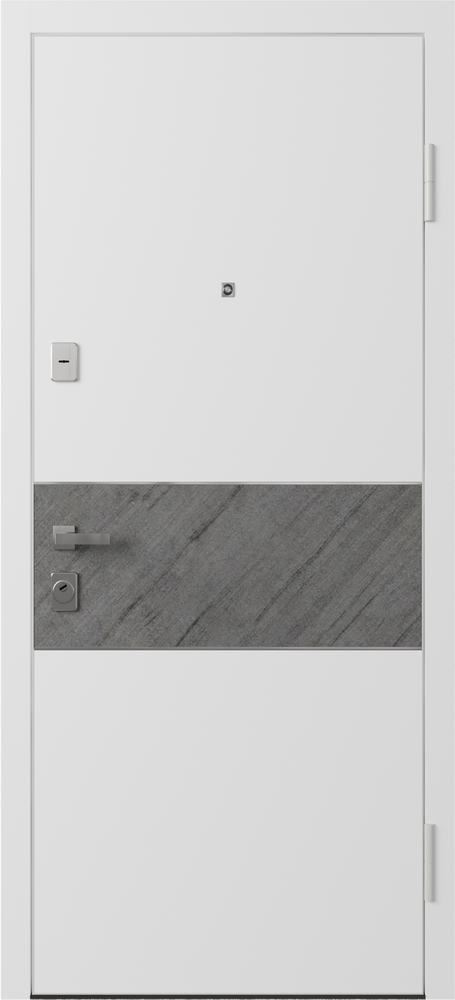 БАЗОВАЯ КОМПЛЕКТАЦИЯ: - Утеплитель: минеральная плита Rockwool толщиной 70 мм; - Броненакладка; - Ночная задвижка; - Эксцентрик; - Защита замковой зоны - стальной карман c полимерно-порошковым покрытием совокупной толщиной 3 мм; - 2 контура силиконового уплотнителя в специаль- ном пазе; - Регулируемые петли (Италия); - Декоративные наличники; - Специальные щетки в нижней части полотна; - Ручка Fadex Asti (Италия); - Глазок
