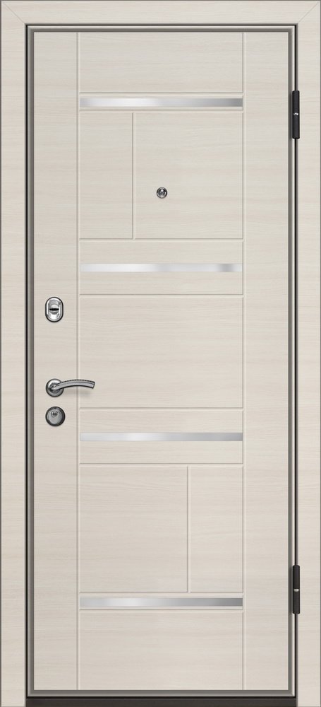 БАЗОВАЯ КОМПЛЕКТАЦИЯ: - Утеплитель: минеральная плита ROCKWOOL; - Ночная задвижка; - Броненакладка; - Двойной контур уплотнителей (Швеция); - 4 вертикальных ребра жесткости; - 2 горизонтальных ребра жесткости; - 2 противосъемных штыря; - 2 осевые петли на опорных подшипниках; - Эксцентрик; - Ручка раздельная; - Глазок 120°