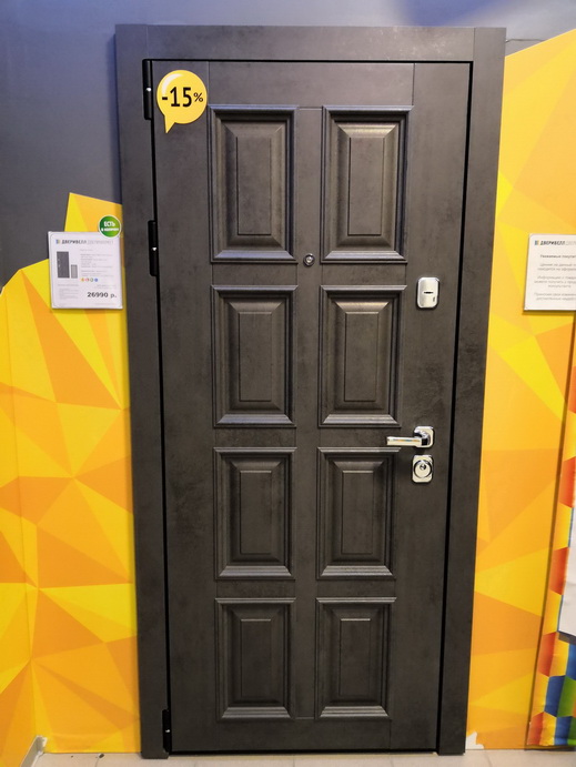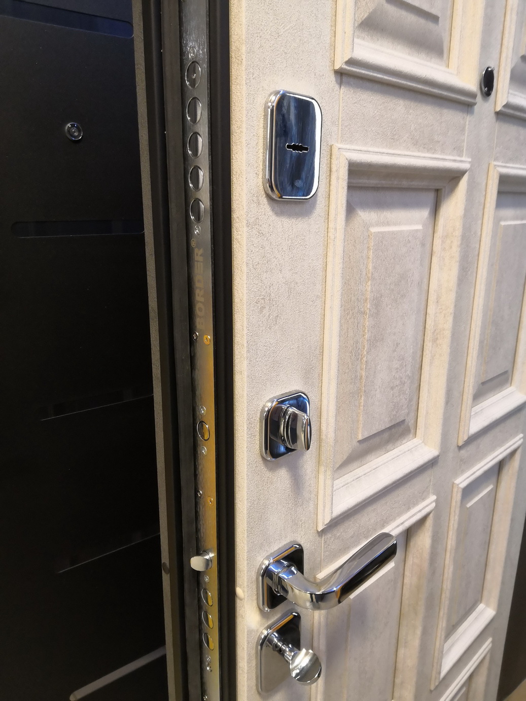 ОписаниеДверной стальной однопольный блок с открыванием наружу. Произведен на уникальных автоматизированных линиях и роботизированных комплексах ведущих зарубежных производителей. Поставляется с правым и левым открываниемКачествоСертифицирован для РФ по ГОСТ 31173-2016. Наивысшие классы по эксплуатационным характеристикам (1) и прочности (М5). Сертификат POCC RU.AM05.H03178ОсобенностиЦельногнутая конструкция полотна и закрытый цельнокатаный профиль коробки. Стабильно точные геометрические показатели, которые обеспечиваются высокой степенью автоматизации и роботизации производстваМарка сталиВысококачественная конструкционная углеродистая сталь (08пс)ОкраскаИндустриальная полиэфирная порошковая краска с предварительной антикоррозийной обработкой (фосфатированием)Отделка снаружиДекоративная панель с возможностью замены. Толщина 18 мм, Эко Шпон (Германия, Южная Корея)Отделка внутриДекоративная панель с возможностью замены. Толщина 22 мм, Эко Шпон (Германия, Южная Корея)РегулировкаДверь укомплектована эксцентриком, правильная регулировка которого обеспечивает легкость открывания двери и беспрепятственную работу замковых механизмовУплотнениеТри контура высококачественного EPDM-уплотнителя (Швеция)УсилениеЧетыре вертикально-горизонтальных усиливающих омега-профиля (ребра) создают единую монолитную жесткость и прочность конструкции. Сверхпрочная конструкция «6x2» - двойная толщина стали профиля полотна, двух контуров коробки, в зонах замка и петель. Дополнительную стойкость ко взлому обеспечивают два противосъемных штыря с цинковым покрытием (для защиты металла от коррозии)Утепление полотнаВнутри полотна установлена конструкционная теплоизоляционная панель SIP (Structural Insulated Panel), которая не только обеспечивает необходимую теплоизоляцию, но и придает дополнительную жесткость и прочность дверному блокуУтепление коробкиВлагостойкая теплоизоляционная плита KNAUF ThermКреплениеДвери крепятся анкерными болтами через коробку (8 отверстий) или с использованием монтажных пластин (6 шт. в комплекте)Внимание!Дверь предназначена для установки в тамбуре или под защитным козырькомТолщина полотна/коробки, мм98/98Толщина стали полотна/коробки, мм1.2Ширина наличника, мм60Размер проема в свету, см193/76Масса нетто, кг113.5ПетлиДве петли Сombiarialdo 140*20 мм на опорном подшипнике с открыванием на 120° (Италия)Нижний замокBorder K 4-3 с 3 ригелями диаметром 17 мм, массивные общие планки (ответная планка из нержавеющей стали), 4-й (высший) классВерхний замокBorder K 8-6 с 5 ригелями диаметром 18 мм (один из ригелей с каленой вставкой), 5 ключей 120 мм, 4-й (высший) классЦилиндрSM-95-65/30 ключ-фиксатор NI Никель, 5 ключей в комплекте (либо аналоги)РучкаTOR CP ХромНочная задвижкаЗ-60 Б (вкладная)Глазок6016/70-110 CR Хром со шторкой и углом обзора 180°ПрочееЗаглушки для монтажных отверстий, чашки для противосъемных штырей
