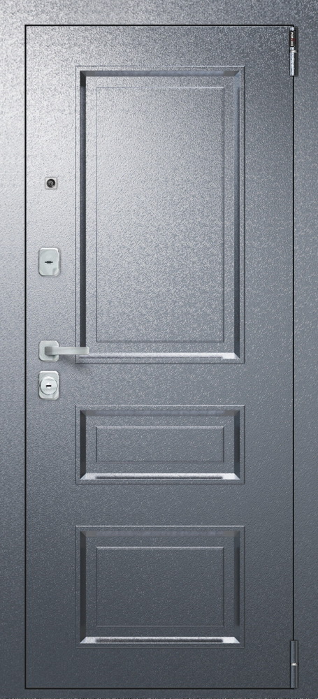 ОписаниеСтальной дверной блок с открыванием наружу. Произведен на уникальных автоматизированных линиях и роботизированных комплексах ведущих зарубежных производителей. Подходит для установки в тамбуре или под навесом. Декоративная панель с внутренней стороны двериКачествоСертифицирован для РФ по ГОСТ 31173-2016. Наивысшие классы по эксплуатационным характеристикам (1) и прочности (М5). Сертификат POCC RU.AM05.H03178ОсобенностиЦельногнутая конструкция полотна и закрытый цельнокатаный профиль коробки. Стабильно точные геометрические показатели, которые обеспечиваются высокой степенью автоматизации и роботизации производстваМарка сталиВысококачественная конструкционная углеродистая сталь (08пс)ОкраскаИндустриальная полиэфирная порошковая краска с предварительной антикоррозийной обработкой (фосфатированием)Отделка снаружиМеталлофиленкаОтделка внутриДекоративная панель с возможностью замены. Толщина 22 мм, Эко ШпонРегулировкаДверь укомплектована эксцентриком, правильная регулировка которого обеспечивает легкость открывания двери и беспрепятственную работу замковых механизмовУплотнениеТри контура высококачественного EPDM-уплотнителя (Швеция)УсилениеЧетыре усиливающих омега-профиля (ребра) создают единую монолитную жесткость и прочность конструкции. Сверхпрочная конструкция «6x2» - двойная толщина стали профиля полотна, двух контуров коробки, в зонах замка и петель. Дополнительную стойкость ко взлому обеспечивают два противосъемных штыря с цинковым покрытием (для защиты металла от коррозии)Утепление полотнаВлагостойкая теплоизоляционная плита KNAUF Therm - экологически чистый материал (не содержит фенол-формальдегид, не выделяет фосген)КреплениеДвери крепятся анкерными болтами через коробку (8 отверстий) или с использованием монтажных пластин (6 шт. в комплекте)Внимание!Дверь предназначена для установки в тамбуре или под защитным козырькомТолщина полотна/коробки, мм80/80Ширина наличника, мм60Петли140*20 мм на опорном подшипнике, обеспечивают открывание на 180°, 2 шт.Нижний замокBorder G 4-3 Э с 3 ригелями диаметром 16 мм, 4-й (высший) классВерхний замокBorder G 8-6 Э с 3 ригелями диаметром 16 мм, 4 ключа 97 мм, 4-й (высший) классЦилиндр100-50/50 ключ-фиксатор C Хром, 5 ключей в комплектеРучкаTOR CP ХромНочная задвижкаИ-65ГлазокДаПрочееЗамки установлены компланарно относительно полотна двери (лицевые планки замков находятся в одной плоскости с торцевой частью дверного полотна). В дверной коробке установлены декоративная ответная планка из нержавеющей стали и встроенные гильзы из ABS-пластика, обеспечивающие тихую работу ригелей