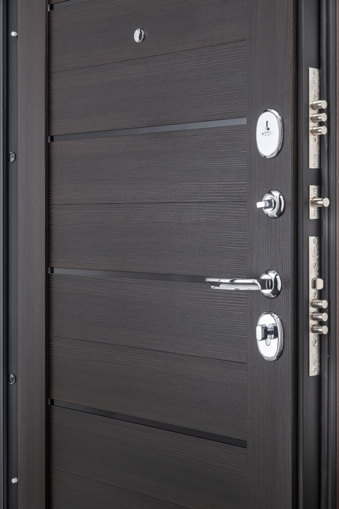 ОписаниеДверной стальной однопольный блок с открыванием наружу. Произведен на уникальных автоматизированных линиях и роботизированных комплексах ведущих зарубежных производителей. Поставляется с правым и левым открываниемКачествоСертифицирован для РФ по ГОСТ 31173-2016. Наивысшие классы по эксплуатационным характеристикам (1) и прочности (М5). Сертификат POCC RU.AM05.H03178ОсобенностиЦельногнутая конструкция полотна и закрытый цельнокатаный профиль коробки. Стабильно точные геометрические показатели, которые обеспечиваются высокой степенью автоматизации и роботизации производстваМарка сталиВысококачественная конструкционная углеродистая сталь (08пс)ОкраскаИндустриальная полиэфирная порошковая краска с предварительной антикоррозийной обработкой (фосфатированием)Отделка снаружиДекоративная панель с возможностью замены. Толщина 10 мм, ВинилОтделка внутриДекоративная панель с возможностью замены. Толщина 22 мм, Эко Шпон (Германия, Южная Корея), окрашенное стекло "Lacobel"РегулировкаДверь укомплектована эксцентриком, правильная регулировка которого обеспечивает легкость открывания двери и беспрепятственную работу замковых механизмовУплотнениеТри контура высококачественного EPDM-уплотнителя (Швеция)УсилениеЧетыре вертикально-горизонтальных усиливающих омега-профиля (ребра) создают единую монолитную жесткость и прочность конструкции. Сверхпрочная конструкция «6x2» - двойная толщина стали профиля полотна, двух контуров коробки, в зонах замка и петель. Дополнительную стойкость ко взлому обеспечивают два противосъемных штыря с цинковым покрытием (для защиты металла от коррозии)Утепление полотнаВнутри полотна установлена конструкционная теплоизоляционная панель SIP (Structural Insulated Panel), которая не только обеспечивает необходимую теплоизоляцию, но и придает дополнительную жесткость и прочность дверному блокуКреплениеДвери крепятся анкерными болтами через коробку (8 отверстий) или с использованием монтажных пластин (6 шт. в комплекте)Внимание!Дверь предназначена для установки в тамбуре или под защитным козырькомТолщина полотна/коробки, мм90/90Толщина стали полотна/коробки, мм1.2Ширина наличника, мм60Размер проема в свету, см193/76Масса нетто, кг94.8Петли140*20 мм на опорном подшипнике, обеспечивают открывание на 180°, 2 штНижний замокBorder G 4-3 Э с 3 ригелями диаметром 16 мм, 4-й (высший) классВерхний замокBorder G 8-6 Э с 3 ригелями диаметром 16 мм, 4 ключа 97 мм в комплекте, 4-й (высший) классЦилиндрBravo AF-100-50/50 ключ-фиксатор C Хром, 5 ключей в комплектеРучкаA-493 C ХромНочная задвижкаЗ-60 НикельГлазок6016/50-90 CR Хром со шторкой и углом обзора 180°ПрочееЗаглушки для монтажных отверстий, чашки для противосъемных штырей
