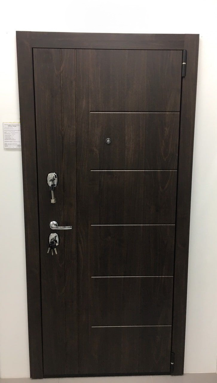 ОписаниеДверной стальной однопольный блок с открыванием наружу. Произведен на уникальных автоматизированных линиях и роботизированных комплексах ведущих зарубежных производителей. Поставляется с правым и левым открываниемКачествоСертифицирован для РФ по ГОСТ 31173-2016. Наивысшие классы по эксплуатационным характеристикам (1) и прочности (М5). Сертификат POCC RU.AM05.H03178ОсобенностиЦельногнутая конструкция полотна и закрытый цельнокатаный профиль коробки. Стабильно точные геометрические показатели, которые обеспечиваются высокой степенью автоматизации и роботизации производстваМарка сталиВысококачественная конструкционная углеродистая сталь (08пс)ОкраскаИндустриальная полиэфирная порошковая краска с предварительной антикоррозийной обработкой (фосфатированием)Отделка снаружиДекоративная панель с возможностью замены. Толщина 10 мм, ВинилОтделка внутриДекоративная панель с возможностью замены. Толщина 22 мм, Эко Шпон (Германия, Южная Корея), окрашенное стекло "Lacobel"РегулировкаДверь укомплектована эксцентриком, правильная регулировка которого обеспечивает легкость открывания двери и беспрепятственную работу замковых механизмовУплотнениеТри контура высококачественного EPDM-уплотнителя (Швеция)УсилениеЧетыре вертикально-горизонтальных усиливающих омега-профиля (ребра) создают единую монолитную жесткость и прочность конструкции. Сверхпрочная конструкция «6x2» - двойная толщина стали профиля полотна, двух контуров коробки, в зонах замка и петель. Дополнительную стойкость ко взлому обеспечивают два противосъемных штыря с цинковым покрытием (для защиты металла от коррозии)Утепление полотнаВнутри полотна установлена конструкционная теплоизоляционная панель SIP (Structural Insulated Panel), которая не только обеспечивает необходимую теплоизоляцию, но и придает дополнительную жесткость и прочность дверному блокуКреплениеДвери крепятся анкерными болтами через коробку (8 отверстий) или с использованием монтажных пластин (6 шт. в комплекте)Внимание!Дверь предназначена для установки в тамбуре или под защитным козырькомТолщина полотна/коробки, мм90/90Толщина стали полотна/коробки, мм1.2Ширина наличника, мм60Размер проема в свету, см193/76Масса нетто, кг94.8Петли140*20 мм на опорном подшипнике, обеспечивают открывание на 180°, 2 штНижний замокBorder G 4-3 Э с 3 ригелями диаметром 16 мм, 4-й (высший) классВерхний замокBorder G 8-6 Э с 3 ригелями диаметром 16 мм, 4 ключа 97 мм в комплекте, 4-й (высший) классЦилиндрBravo AF-100-50/50 ключ-фиксатор C Хром, 5 ключей в комплектеРучкаA-493 C ХромНочная задвижкаЗ-60 НикельГлазок6016/50-90 CR Хром со шторкой и углом обзора 180°ПрочееЗаглушки для монтажных отверстий, чашки для противосъемных штырей