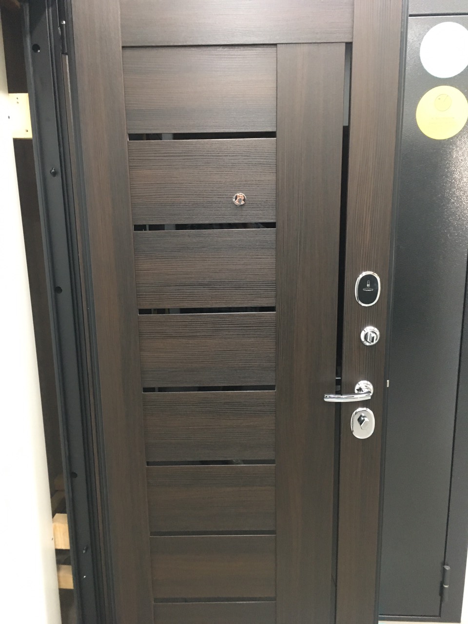 ОписаниеДверной стальной однопольный блок с открыванием наружу. Произведен на уникальных автоматизированных линиях и роботизированных комплексах ведущих зарубежных производителей. Поставляется с правым и левым открываниемКачествоСертифицирован для РФ по ГОСТ 31173-2016. Наивысшие классы по эксплуатационным характеристикам (1) и прочности (М5). Сертификат POCC RU.AM05.H03178ОсобенностиЦельногнутая конструкция полотна и закрытый цельнокатаный профиль коробки. Стабильно точные геометрические показатели, которые обеспечиваются высокой степенью автоматизации и роботизации производстваМарка сталиВысококачественная конструкционная углеродистая сталь (08пс)ОкраскаИндустриальная полиэфирная порошковая краска с предварительной антикоррозийной обработкой (фосфатированием)Отделка снаружиДекоративная панель с возможностью замены. Толщина 10 мм, ВинилОтделка внутриДекоративная панель с возможностью замены. Толщина 22 мм, Эко Шпон (Германия, Южная Корея), окрашенное стекло "Lacobel"РегулировкаДверь укомплектована эксцентриком, правильная регулировка которого обеспечивает легкость открывания двери и беспрепятственную работу замковых механизмовУплотнениеТри контура высококачественного EPDM-уплотнителя (Швеция)УсилениеЧетыре вертикально-горизонтальных усиливающих омега-профиля (ребра) создают единую монолитную жесткость и прочность конструкции. Сверхпрочная конструкция «6x2» - двойная толщина стали профиля полотна, двух контуров коробки, в зонах замка и петель. Дополнительную стойкость ко взлому обеспечивают два противосъемных штыря с цинковым покрытием (для защиты металла от коррозии)Утепление полотнаВнутри полотна установлена конструкционная теплоизоляционная панель SIP (Structural Insulated Panel), которая не только обеспечивает необходимую теплоизоляцию, но и придает дополнительную жесткость и прочность дверному блокуКреплениеДвери крепятся анкерными болтами через коробку (8 отверстий) или с использованием монтажных пластин (6 шт. в комплекте)Внимание!Дверь предназначена для установки в тамбуре или под защитным козырькомТолщина полотна/коробки, мм90/90Толщина стали полотна/коробки, мм1.2Ширина наличника, мм60Размер проема в свету, см193/76Масса нетто, кг94.8Петли140*20 мм на опорном подшипнике, обеспечивают открывание на 180°, 2 штНижний замокBorder G 4-3 Э с 3 ригелями диаметром 16 мм, 4-й (высший) классВерхний замокBorder G 8-6 Э с 3 ригелями диаметром 16 мм, 4 ключа 97 мм в комплекте, 4-й (высший) классЦилиндрBravo AF-100-50/50 ключ-фиксатор C Хром, 5 ключей в комплектеРучкаA-493 C ХромНочная задвижкаЗ-60 НикельГлазок6016/50-90 CR Хром со шторкой и углом обзора 180°ПрочееЗаглушки для монтажных отверстий, чашки для противосъемных штырей