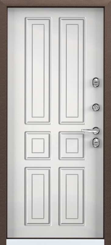 Коллекция Snegir Модель Snegir 20 PP Цвет внешний RAL 3005, RAL 8017, RAL 9016, Слоновая кость, Кремовый ликер, Молочный шоколад, Темный пепел, Зеленый изумруд, Синий сапфир Остекление Глухая Материал внешнего покрытия МДФ влагостойкая 10 мм крашеная Материал внутреннего покрытия МДФ 22 мм с объемным рисунком с ПВХ, МДФ 22 мм с объемным рисунком с финишным декоративным покрытием CORTOREX Утеплитель Пенополистирол (2 слоя) ? Замок основной BORDER ЗВ8-8Г/15 сувальдный ? Замок дополнительный CRIT A-30 4Л сувальдный ? Толщина металла, мм 1.2 Ширина дверного блока, мм 1000, 880, 950 Высота дверного блока, мм 2050, 2100 Толщина полотна, мм 76 Терморазрыв да Возможность установки на улице возможна при соблюдении определенных условий - Взломостойкость