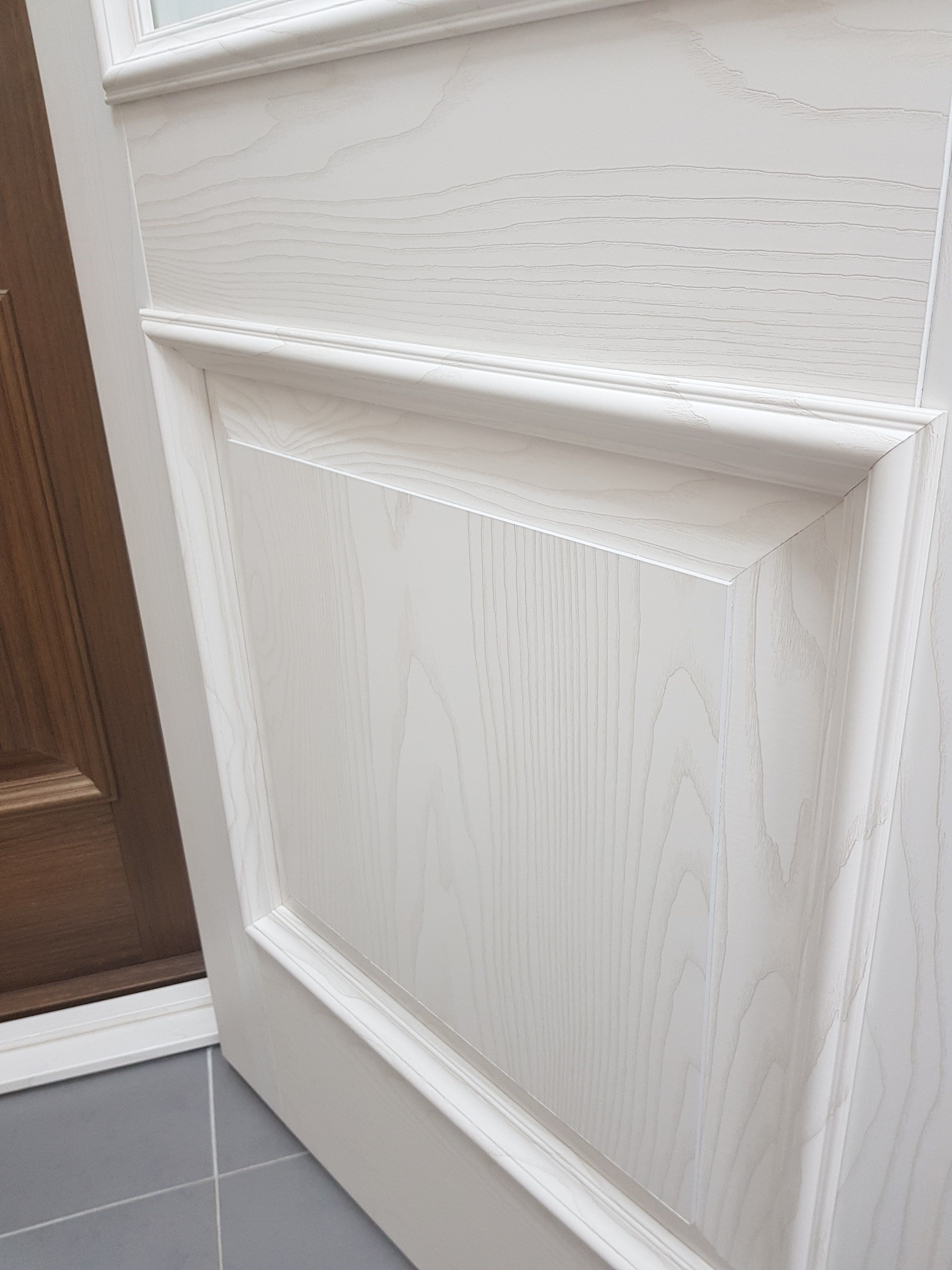 Двери очень красивые и выглядят эффектно, добротно и дорого. По структуре напоминает дерево. Смотрятся богато. Всем, кто у нас был дома очень нравится! От кота следов не остаётся.