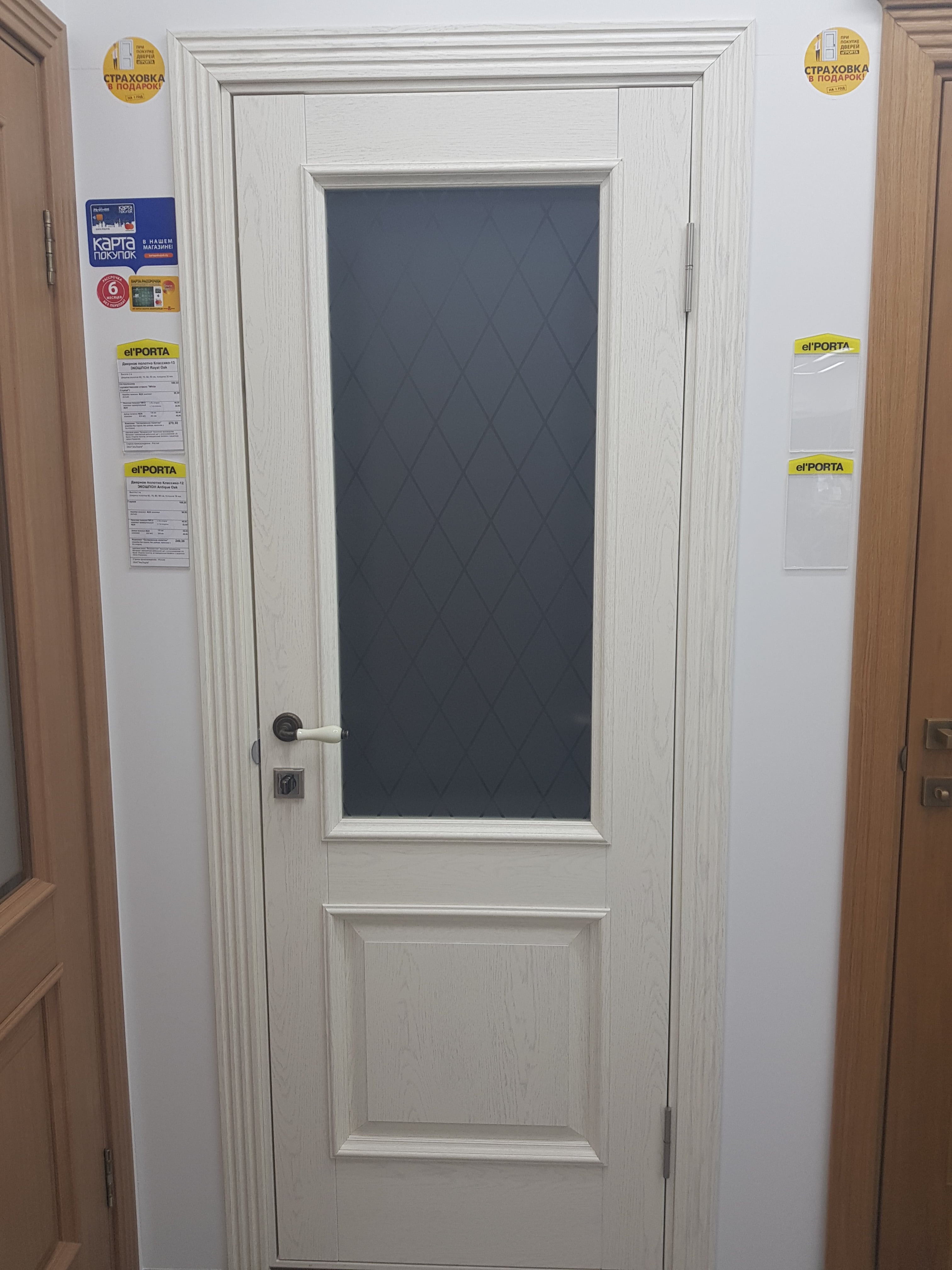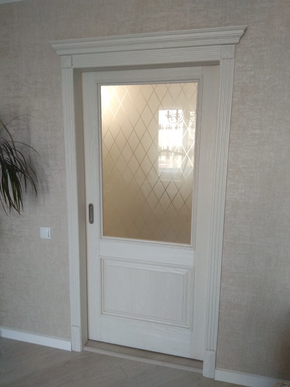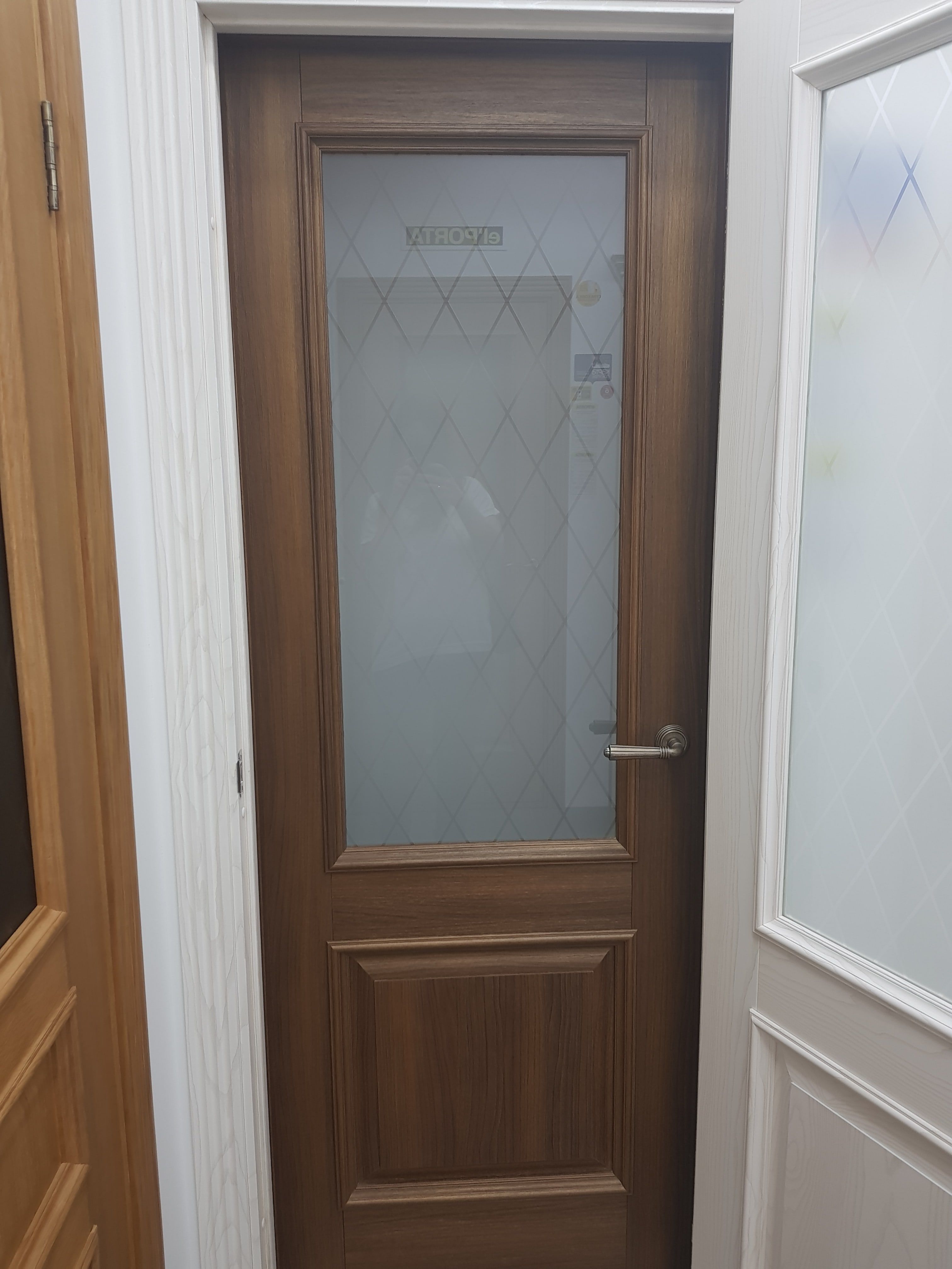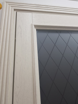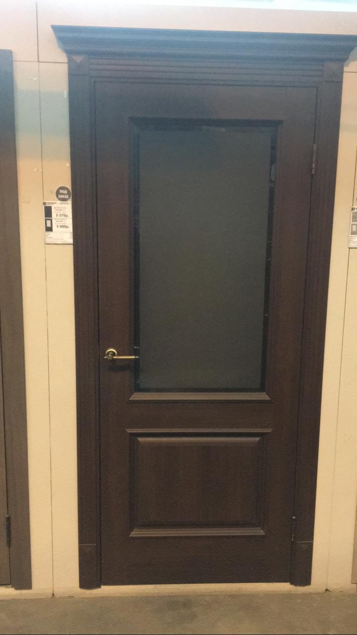 Дверь выбирала в зал, выбрала классическую модель в тоне Chalet Grande с остеклением Сатинато с алмазной гравировкой. Дверь выглядит дорого, без лишнего декора. В меру тяжелая. Поверхность полотна двери качественно обработана. Оплачивала наличными. Цена за такую дверь приятно порадовала.