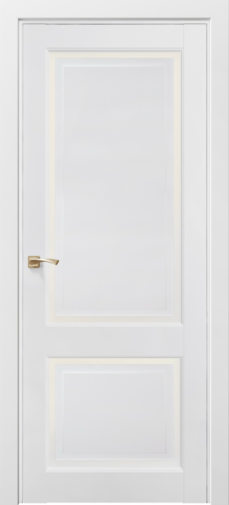 Покрытие полотна - «Снежная королева» - идеально белое матовое, тактильно приятное. В композиции с прямой царгой и объёмной филёнкой создаёт дизайн строгой неоклассики