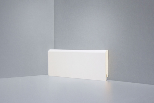 Крепеж на клипсы Deartio или жидкие гвозди. Плинтус облицован окутывающим материалом на основе целлюлозы