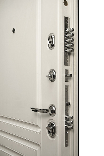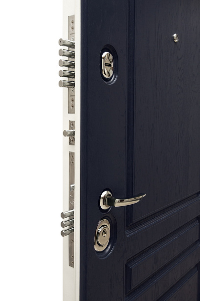 Комплектация: основной замок цилиндровый Kale 252, броненакладка, дополнительный замок сувальдный Border 3B8-6K5, три петли, три противосъемных штыря, ТРИ контура уплотнения, ночная задвижка, эксцентрик, глазок, ручка раздельная;
