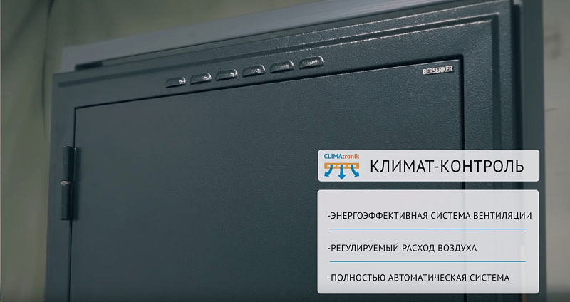Входная дверь BERSERKER с функцией "Климат-Контроль" оборудована системой CLIMAtronik, которая предназначена для постоянного нормированного притока наружного воздуха в помещение. Норма исходит из минимально необходимого по гигиеническим требованиям объема на одного человека - примерно 30 кубометров в час.