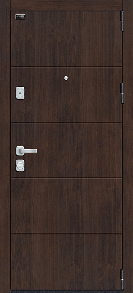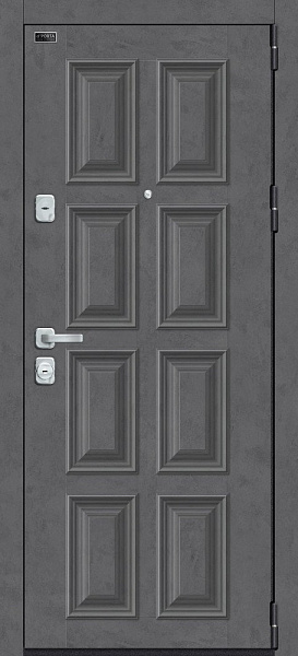 Входные двери El Porta серии M изготовлены из высококачественной конструкционной углеродистой стали (08пс) толщиной 1,2 мм и окрашены полиэфирной порошковой краской в цвет "Лунный камень".