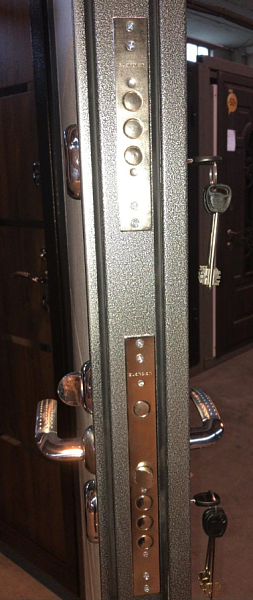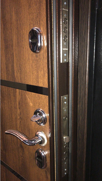 Модели комплектуются двумя замками Гардиан (оба сувальдные), тремя петлями на опорном подшипнике, ночной задвижкой, тремя контурами уплотнителя. Утепление полотна - базальтова плита с пенопластом / минеральная вата.