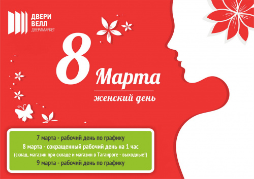 8 марта - сокращенный рабочий день на 1 час (на складе, в магазине при складе и в Таганроге - выходной день!)