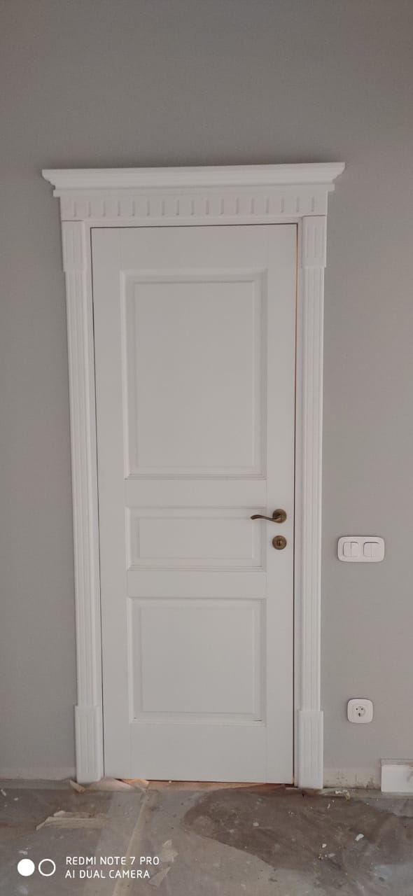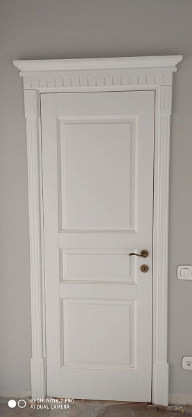Обрамление двери - наличник фрезерованный комбинированный (с розетками и цоколями), возвышение, карниз