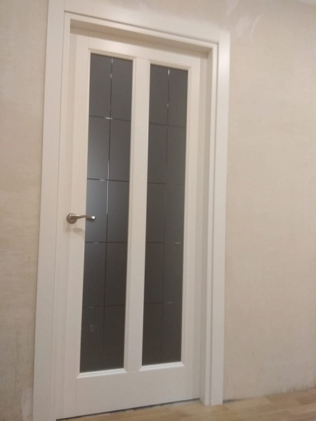 Межкомнатные двери Волховец, модель Galant 1411, покрытие - Ciplex, цвет Белый шелк. В остекленной модели Galant 1412 используется стекло Сатинато с алмазной гравировкой «Лофт»